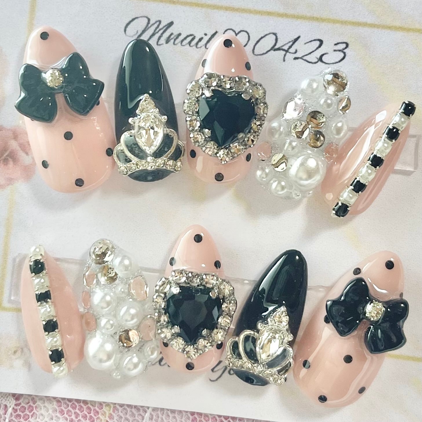 大人可愛い3dリボンネイル エレガント ティアラパーツ