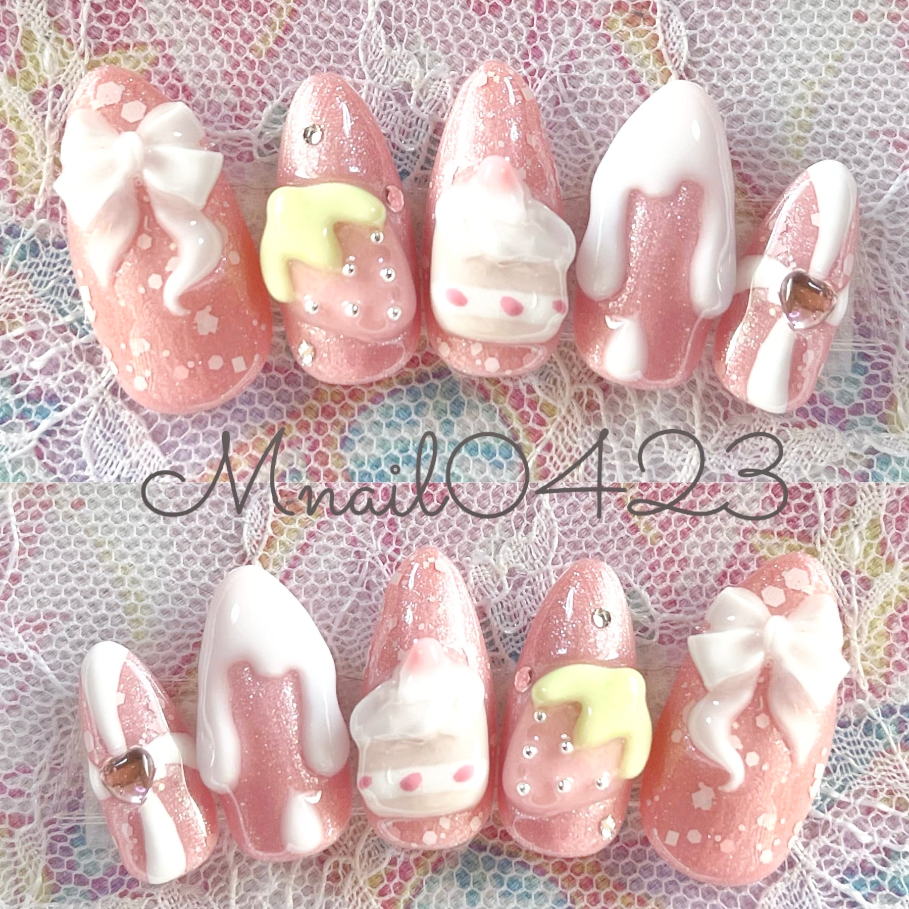 ピンクラメベース 3dネイル♡ スィーツネイル♡ ふわふわケーキ
